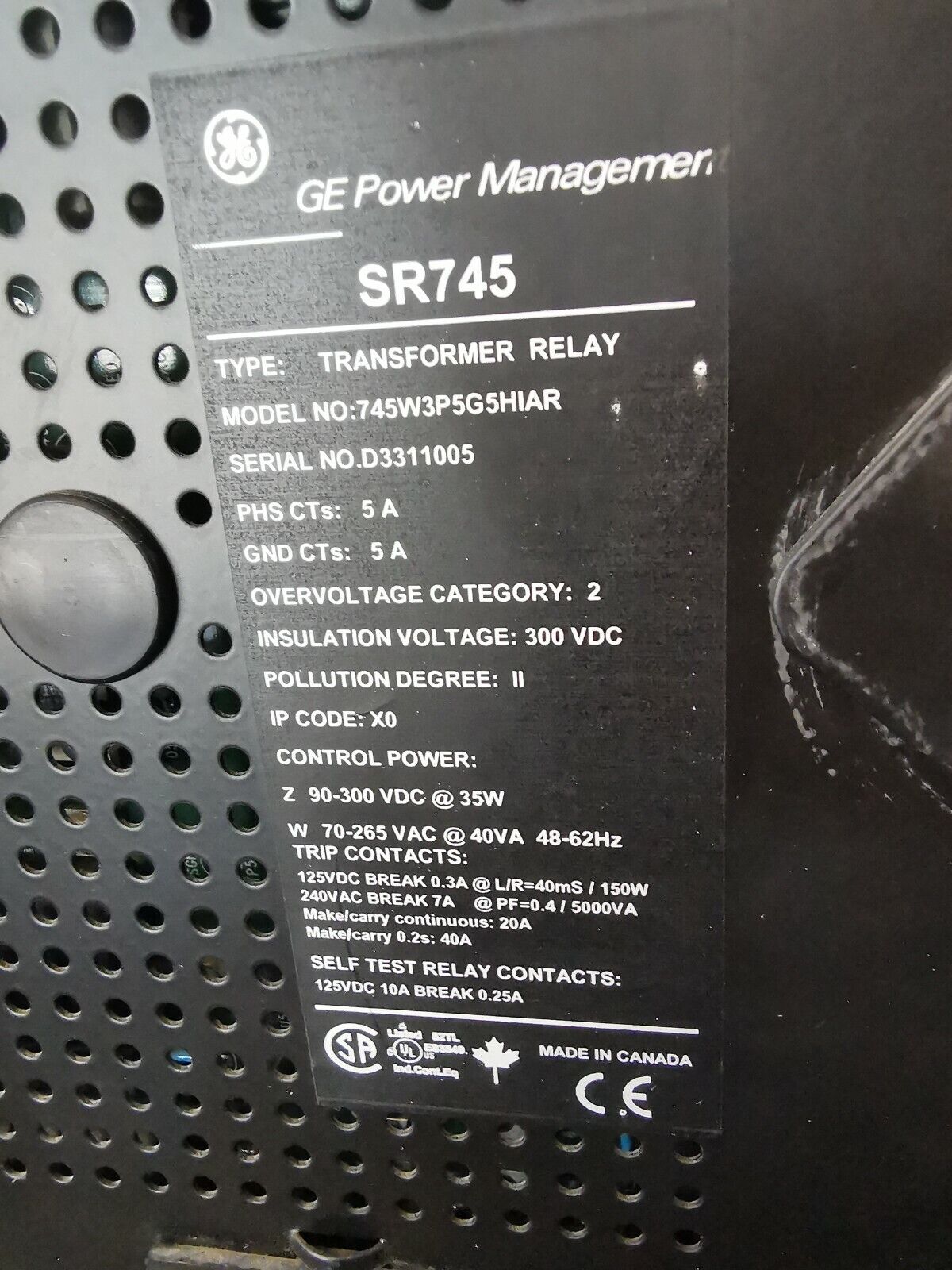 GE SR745 745W3P5G5HIAR 变压器管理继电器